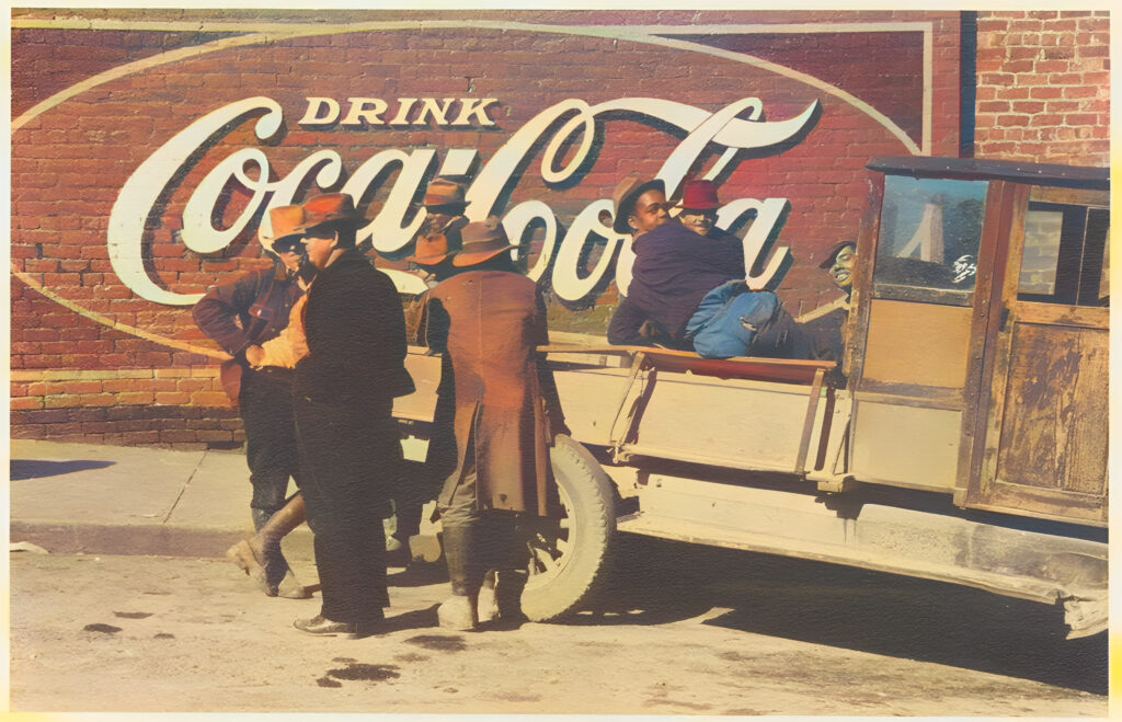 For this project, I chose to colorize an old black-and-white photograph from 1939. When brought into color using digital tools, the image revealed far more detail than in its original black and white form. Elements that once blended together became vivid and distinct, including a striking vintage advertisement, intricately designed period cars, and cultural markers such as clothing and racial representation. The presence of consumer branding, particularly Coca-Cola signage, became more visually impactful once restored with color. By bringing the past to life in this way, I was able to engage more directly with the historical moment captured in the image. The process not only deepened my understanding of everyday life in 1939, but also prompted reflection on how dramatically society has changed in less than a century and what the next hundred years might hold.